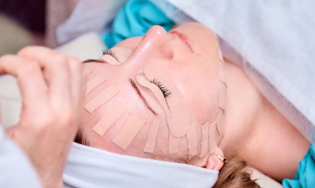 Taping estetyczny to stosunkowo nowa technika w walce z pierwszymi widocznymi oznakami starzenia. Przy użyciu plastrów naklejanych i naciąganych w odpowiednich obszarach twarzy i szyi, wzmacniany i podtrzymany jest efekt przeprowadzonego masażu Kobido. Głównym zadaniem tapów jest obniżenie napięcia mięśniowego oraz przywrócenie tkankom ich elastyczności. Plastrami pracujemy nas podniesieniem owalu twarzy i zmieszeniem opuchlizny. Ich odpowiednie naciągnięcie sprawia, że działają pobudzająco na mięśnie, co powoduje spłycenie zmarszczek.