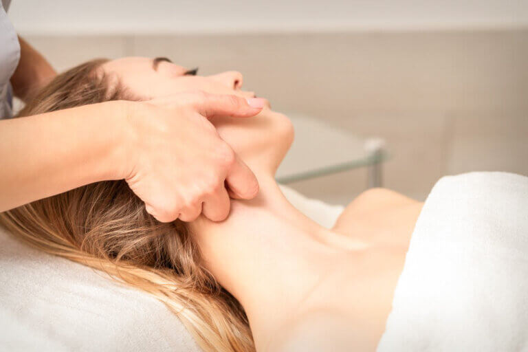 Stymulacja relaksacyjna niweluje z twarzy oznaki stresu. Masowana jest również szyja, co w efekcie relaksuje i odpręża.